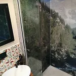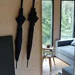 Le logement Tiny House Im Grunen dispose d'un coin salon et d'un espace de repas, ainsi que d'une TV et d'une TV à écran plat avec des chaînes satellite pour un séjour plus divertissant. Les éléments intérieurs comprennent un canapé et un bureau, ainsi qu'une cheminée en pierre. Dotée de toilettes séparées et d'une douche, la salle de bains est également équipée d'un sèche-cheveux et des draps de bain.